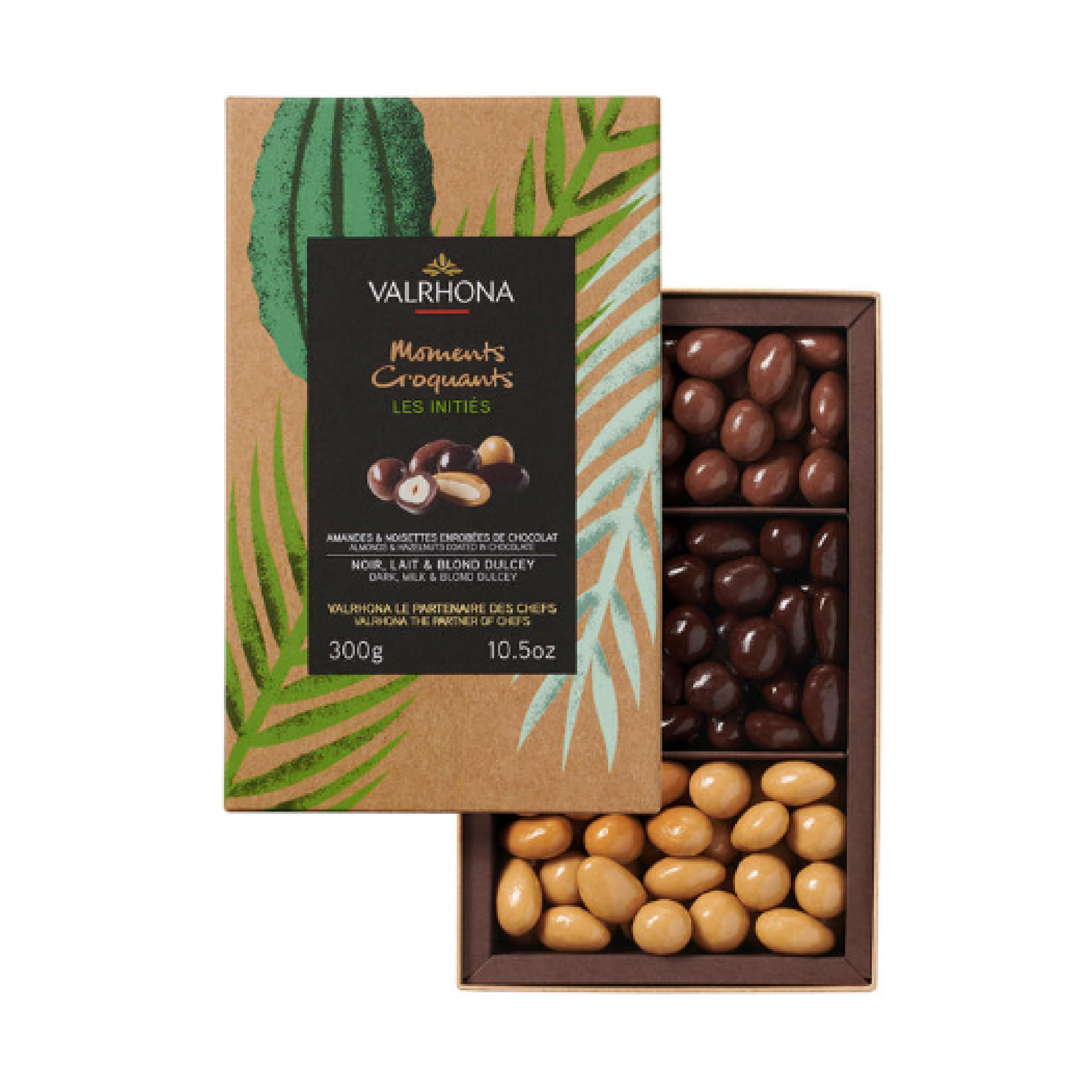 Valrhona produces the most delicate gift boxes for their grand cru chocolates. The boxes contain little squares of chocolate wrapped in paper, 5g each.